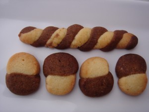 Formez deux boudins, découpez en tranches de 6 mm d’épaisseur environ, assemblez les deux parties.