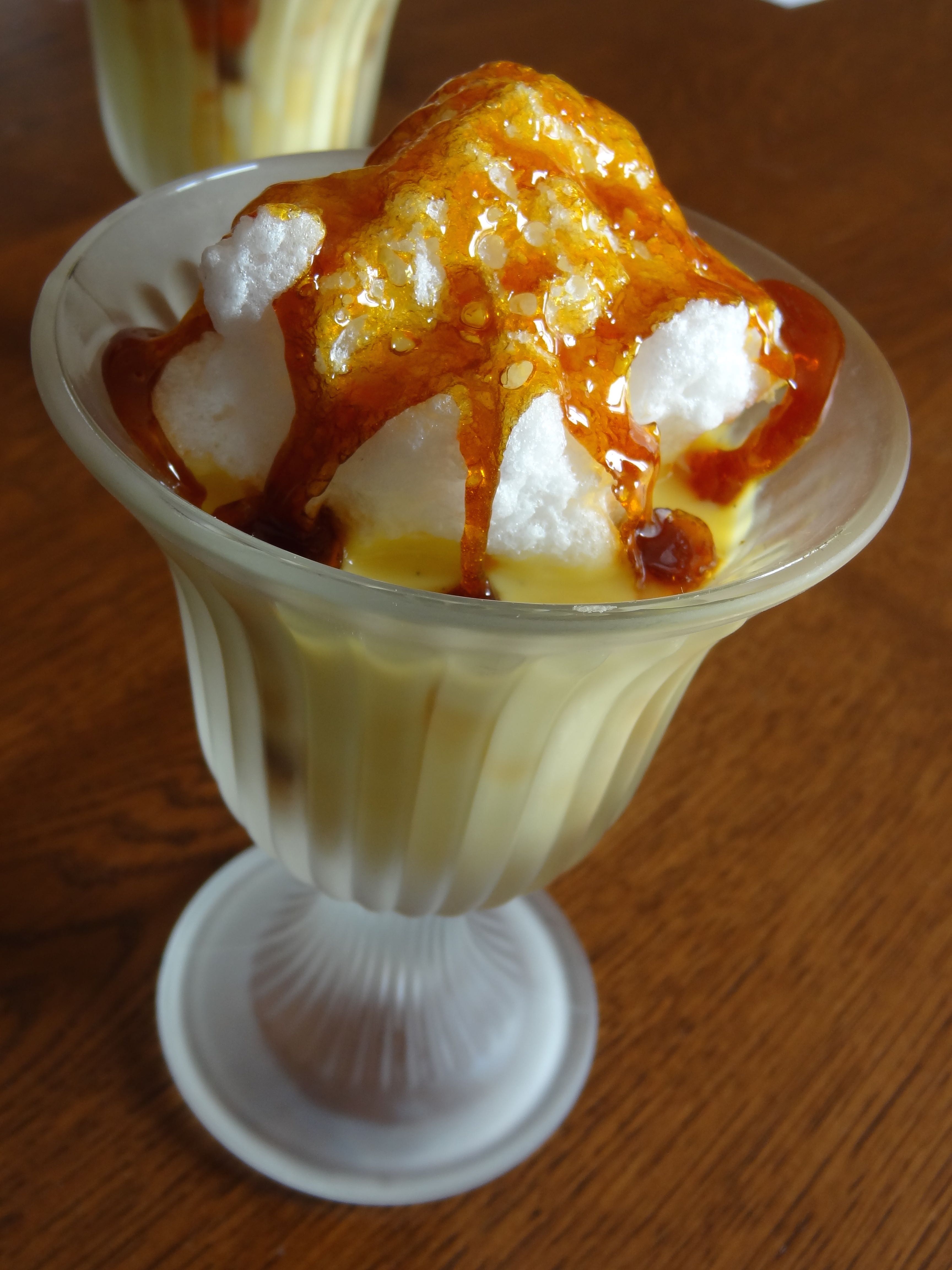 Dresser les blancs sur chaque crème anglaise, puis réserver au réfrigérateur.